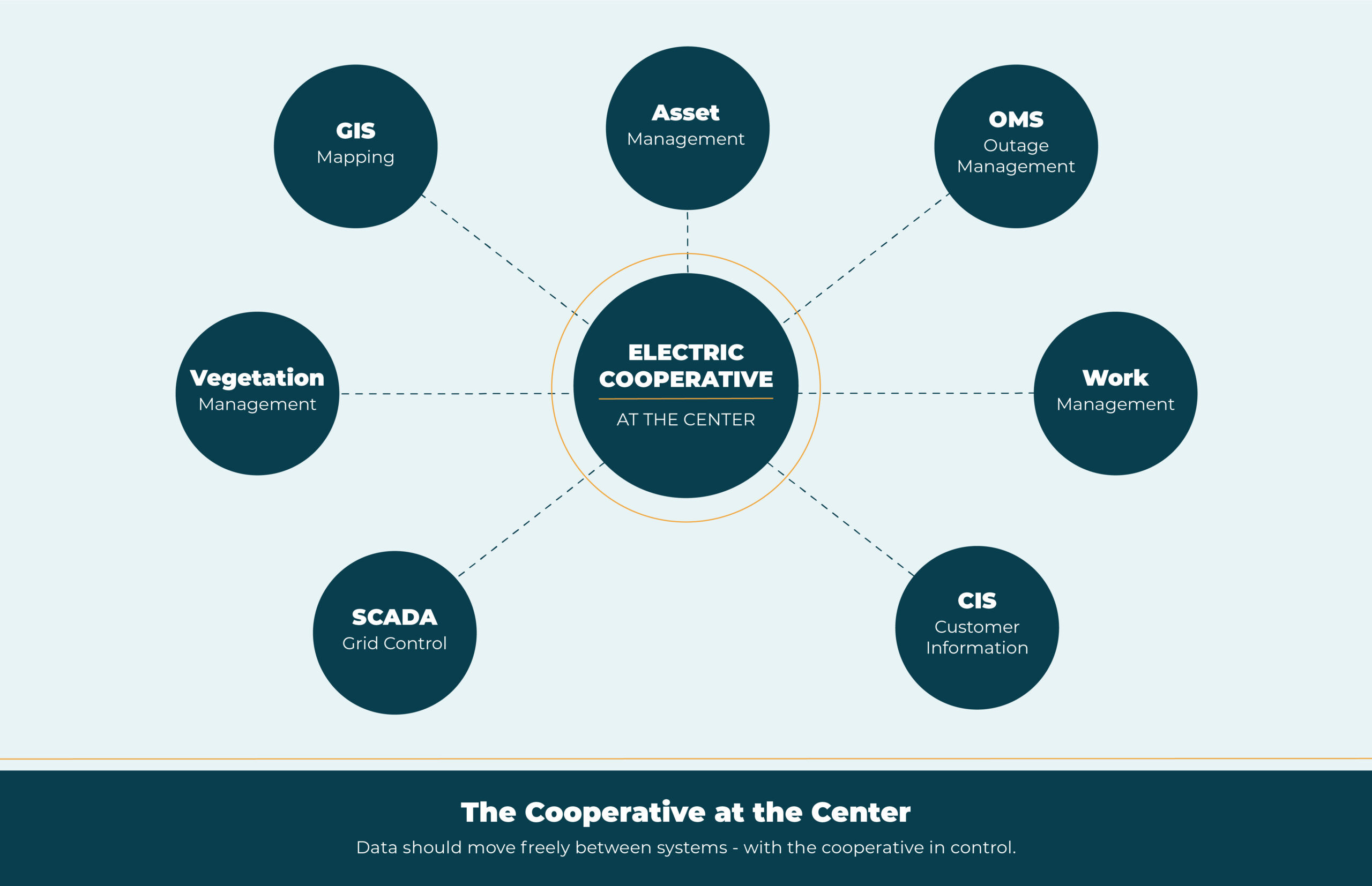 Co-ops operate in one of the most complex information environments of any industry. GIS, OMS, CIS, SCADA, work management, vegetation management, staking, asset management, finance, engineering, drone imagery, satellite data. All of these systems need to interact. The complexity of that environment calls for the best tool for each job, and the cooperatives that thrive are the ones whose systems work together.